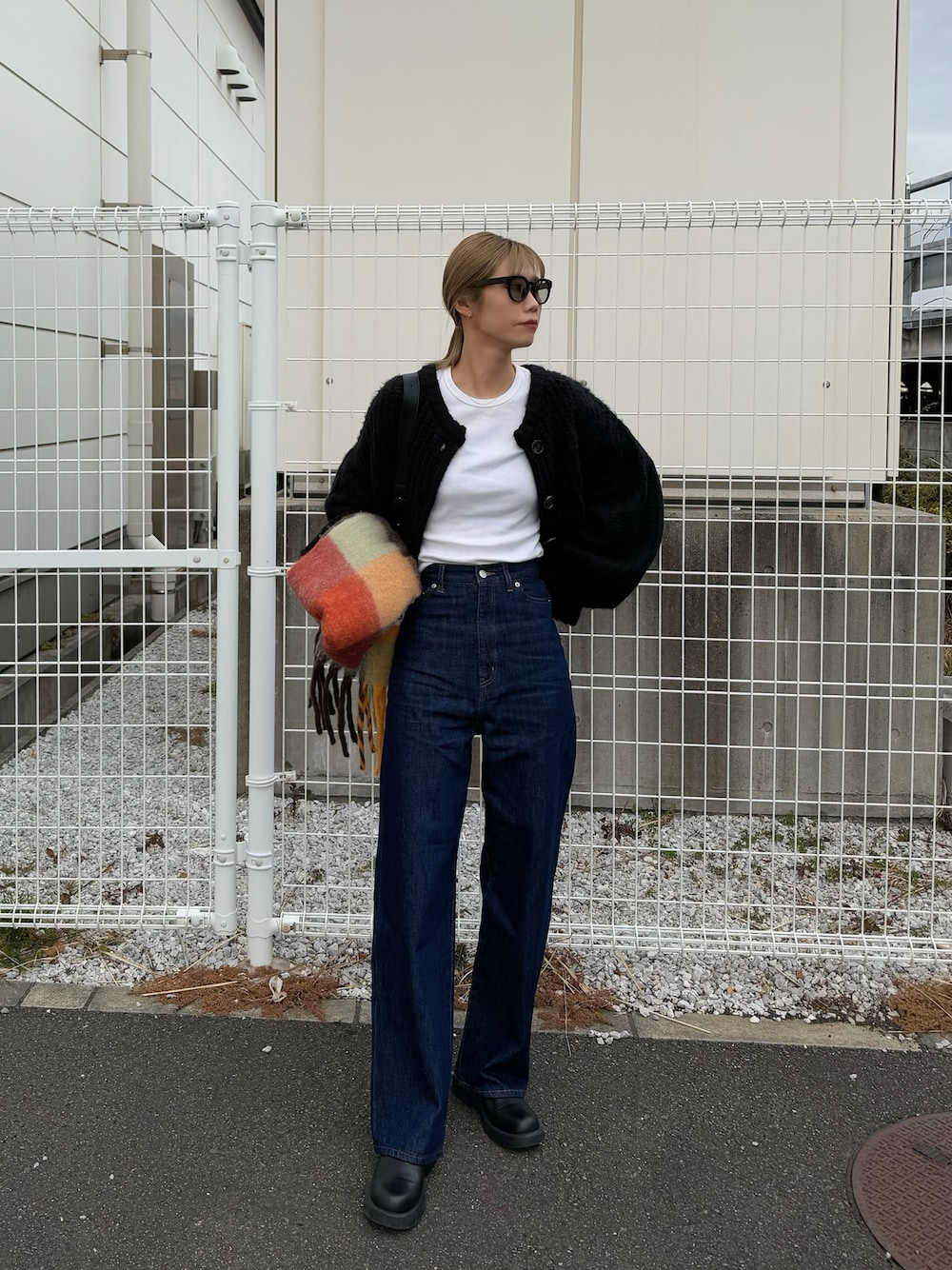 asammyのデニムパンツ「ハイウエストワイドデニムパンツ」を使ったコーディネート