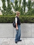 ブラック系のトップス、ブラック系のバッグを着用したレディースの秋コーディネートの2枚目の写真