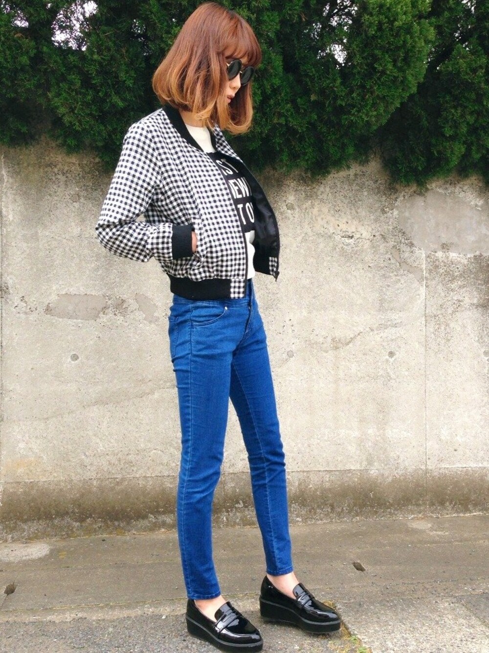 ブルゾン:しまむら ニット:moussy デニム:Heather 厚底プチプラコーデ♡