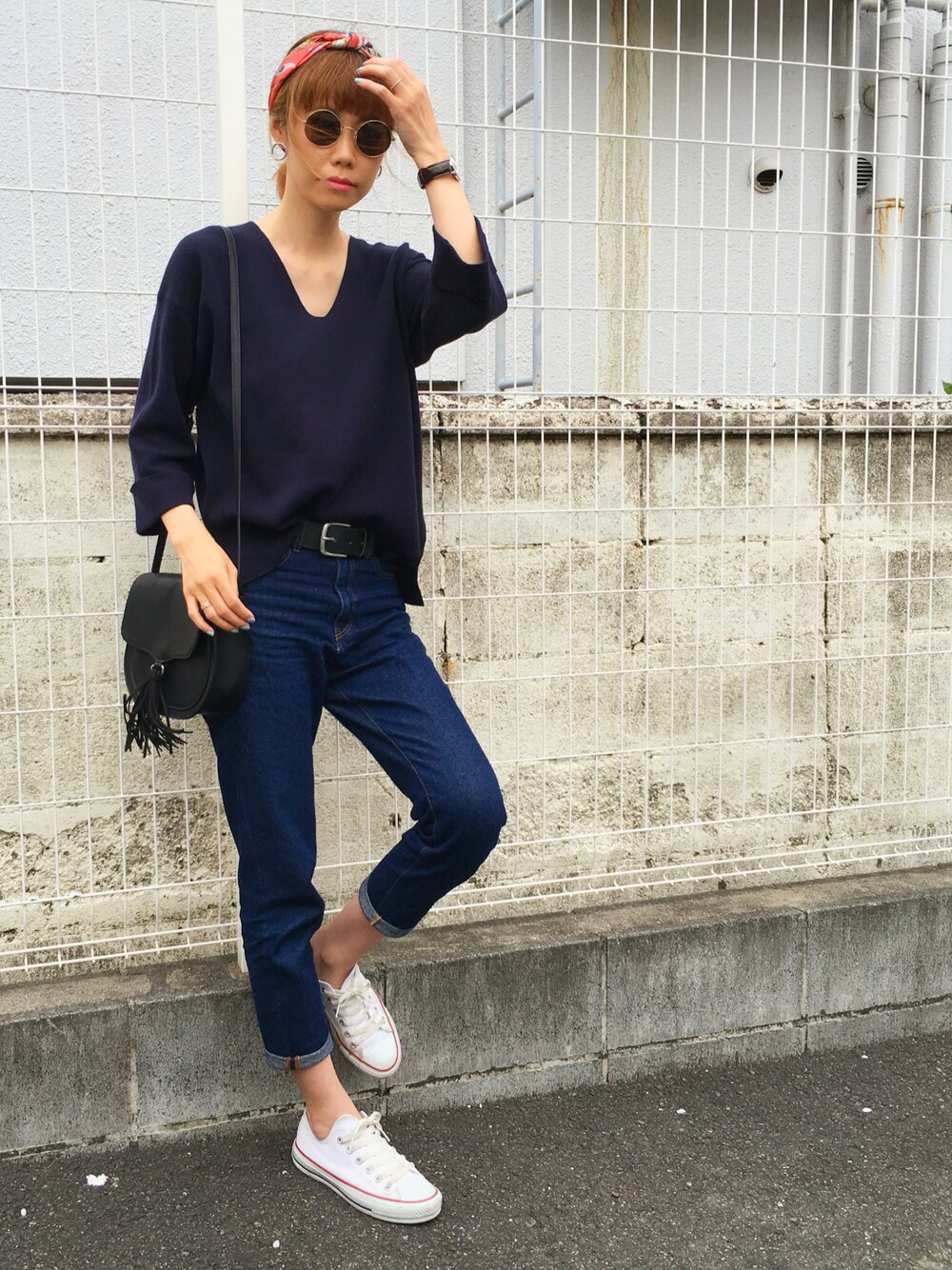 asammyのバンダナ/スカーフ「Factor= タッセル柄サテンスカーフ」を使ったコーディネート