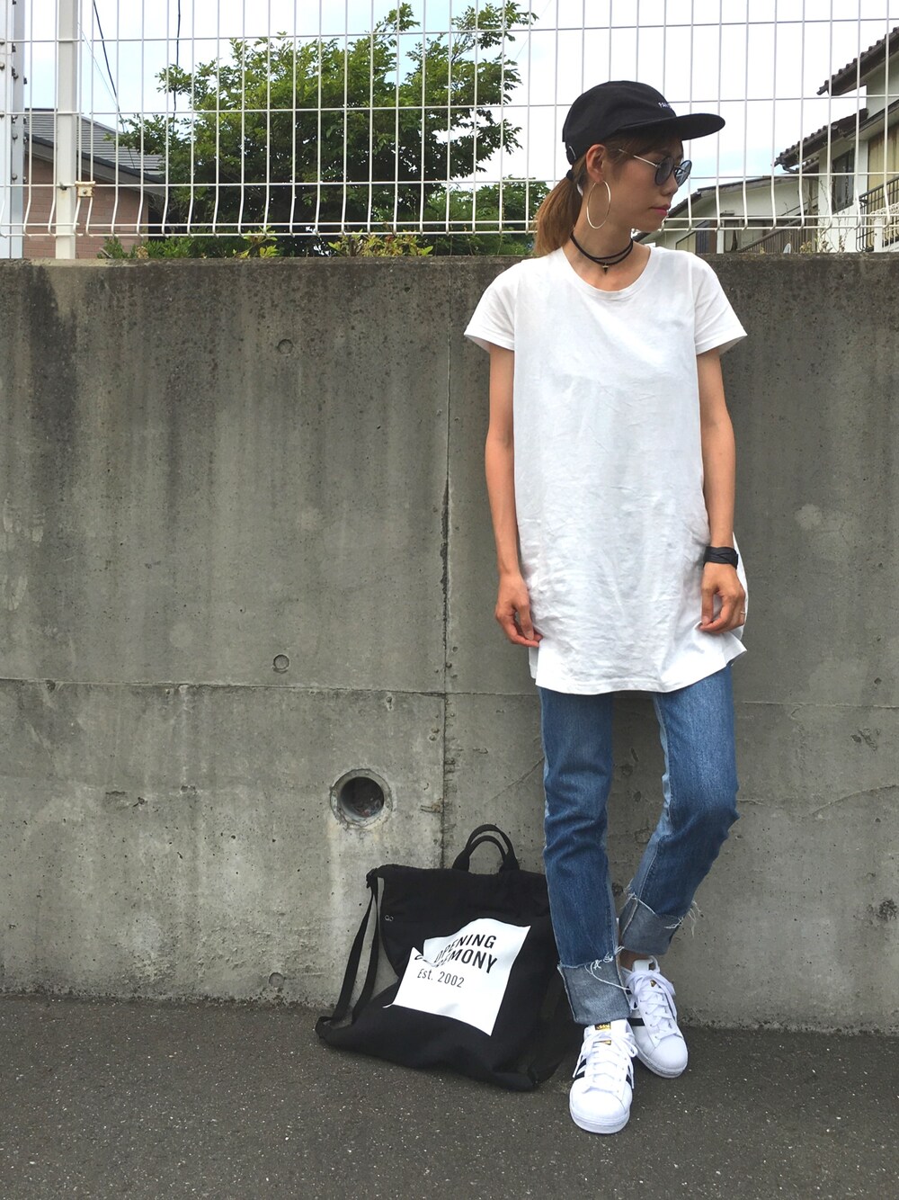 simpleすぎた日👐🏻 キャップやアクセで頑張った日👐🏻 BIGフープピアス可愛い👐🏻 instagram @asammy_s