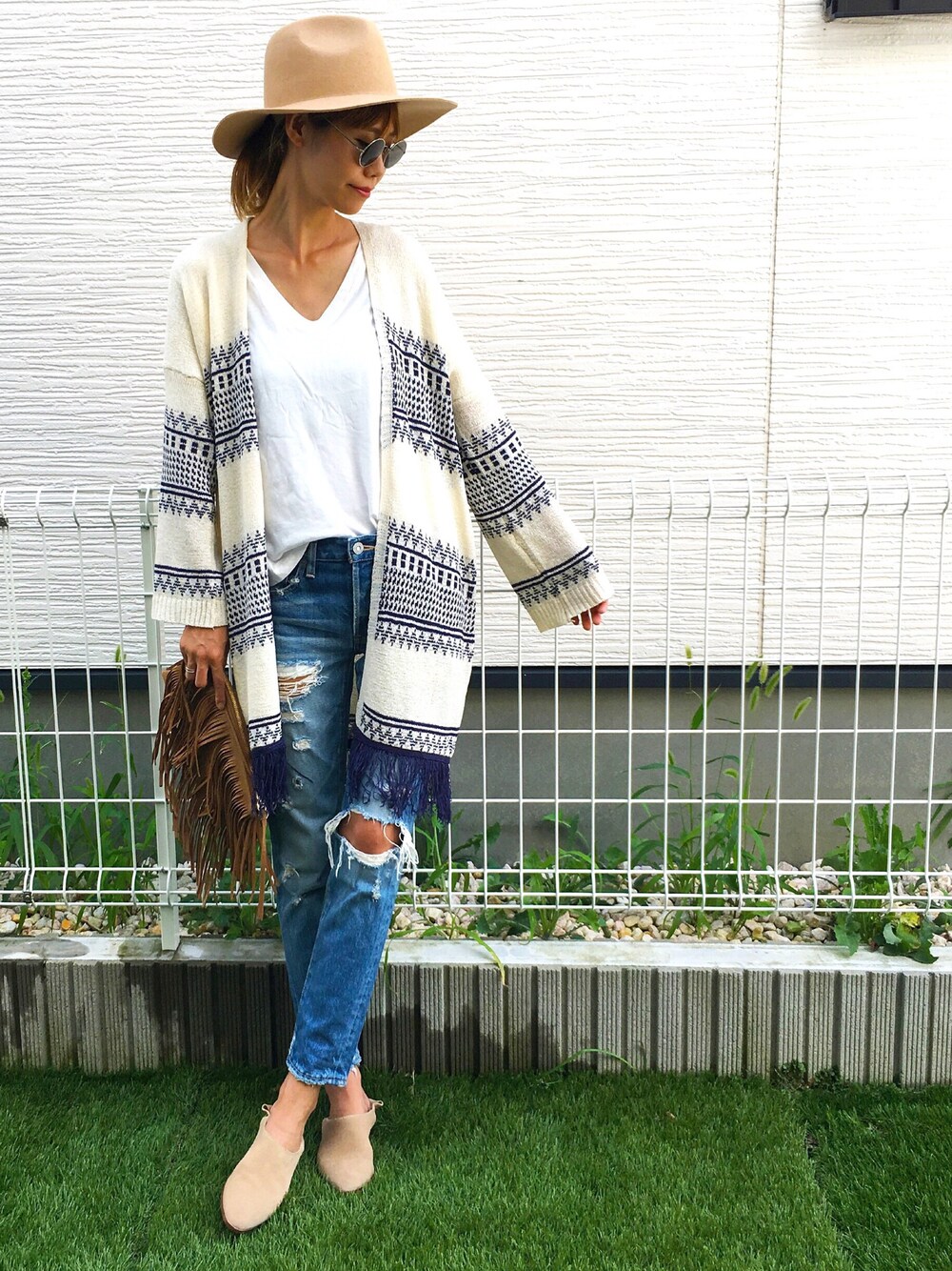 asammyのカーディガン/ボレロ「フリンジニットカーディガン」を使ったコーディネート