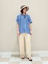トップス 袖口がフリルの今季おすすめのブラウス。落ち感があるのすっきり見えします◎ ボトム 肌触りの柔らかい素材で着心地抜群のイージーパンツ。好きな丈にセルフカット出来ます♪