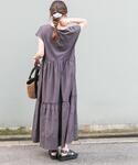 カットソー素材で暑い時期もおすすめです。 ティアードや裾のレースがポイントの一枚で着れるワンピースです!