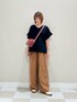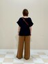 袖のロールアップがポイントのシンプルなVネックニットを質感が秋らしくておすすめのパンツと合わせました!