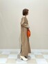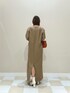 さりげないフリンジがアクセントの深Vネックワンピース。肩パットが入っているのでモードな印象に。