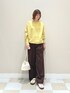 ほどよいゆるさで着やすいカラーニットプルオーバーとゆったり履きやすいパンツでシンプルなカジュアルコーデに!