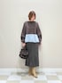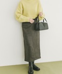 配色が可愛いフェザードッキングニットにスエード調のタイトスカートのスタイルです!