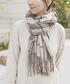 チェックストールをアクセントにふわふわな質感のノーカラージャケット、タイトスカートでお出掛けコーディネートに。