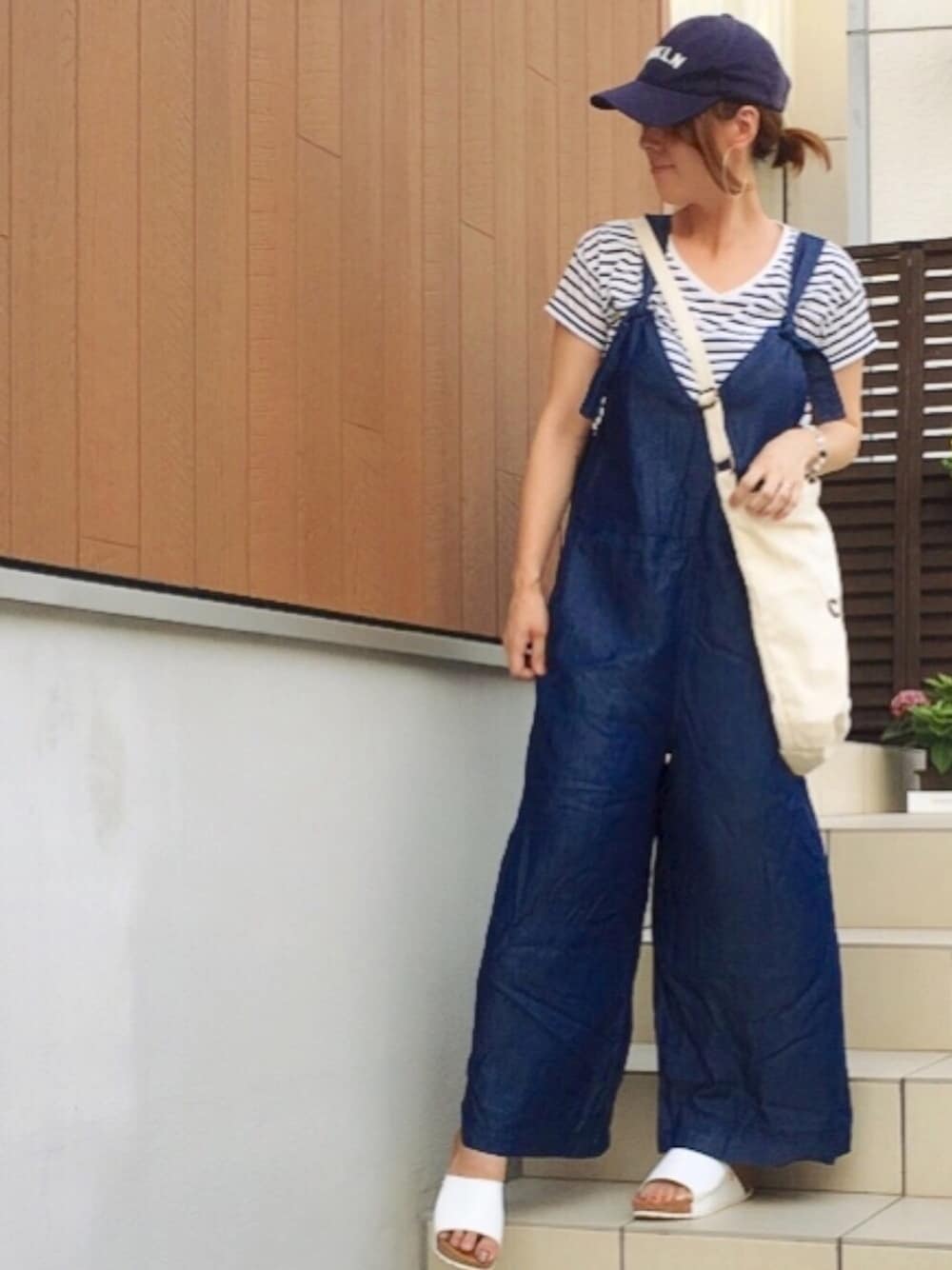 見ていただいてありがとうございます♡ ボーダートップス×サロペットのゆるゆるコーデ♡ 暑すぎる〜😩 皆様も体調気をつけて下さいね✨