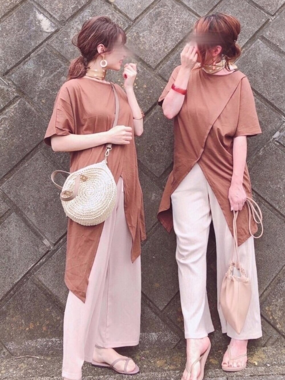 見ていただきありがとうございます😊 あいちんとAuntmari'sさんのアシンメトリーオーバーTシャツでリンクコーデ👯♀️ 珍しいデザインが目を惹きとっても可愛い😍❤️ Instagram→love.we.ar