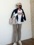 見てくださりありがとうございます♡ 全身ikkaで秋コーデ🍂 【タレント着用/親子コーデ】 ◇メッシュデニムブルゾン デニム見えするメッシュ素材で、 Gジャンとシャツ間をとった感じでレイヤードスタイルもごわつかず、スマート見えします! ◇コットンUSA裾ラウンドロンT 一枚でもレイヤードでも使える、万能な裾ラウンドTシャツ♡ 持ってて損なしっ♡ 【タレント着用】 ◇GOKU楽パンツ スリムストレート スッキリ見えする!履いてて楽ちん!で綺麗見えがかなっちゃう嬉しいパンツ! 秋アイテム可愛いのいっぱい♡ 是非チェックしてみてください♡