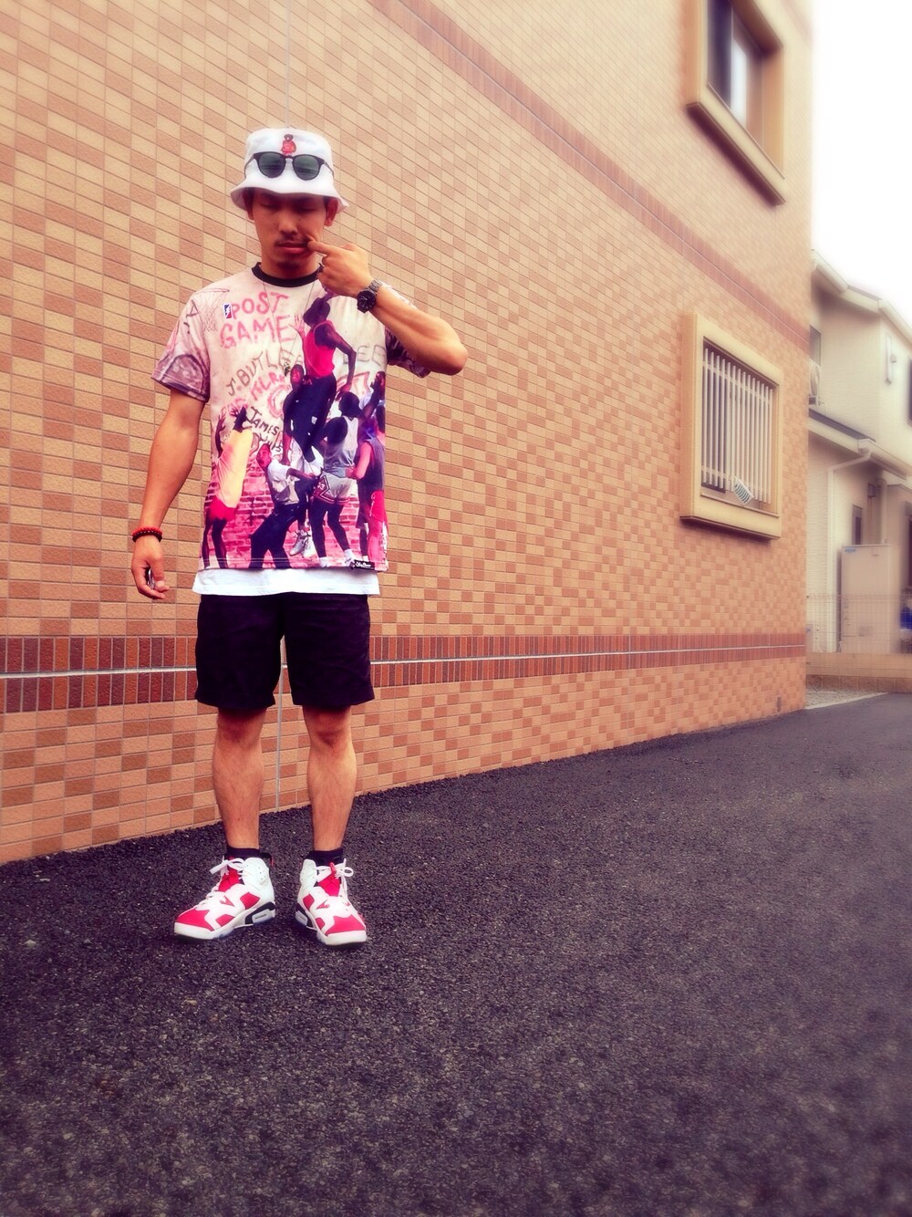 トップはJordan4のレトロカードサンプリングの総柄なのにスニーカーはjordan6なのは内緒で.