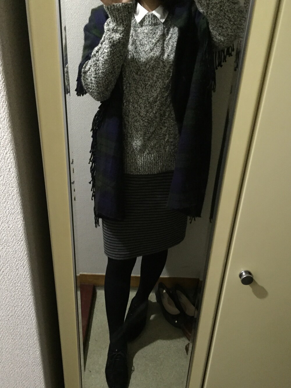 この前遊んだ友達も来てたユニクロニット♡笑 今日初めて♪ これ暖かいからストールにしてみました♥︎⍤⃝