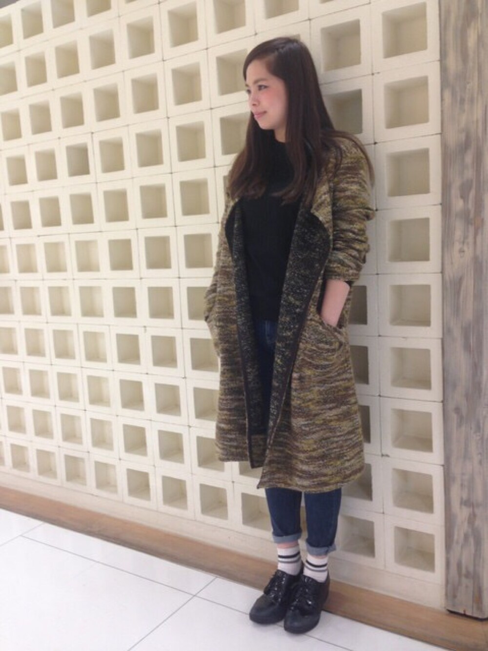 黄色のコートは他の人となかなかかぶらず、なおかつ派手すぎないのでとってもおすすめです♡ニット×デニムのシンプルコーデに合わせるだけで今年らしく着ていただけます(^o^)
