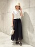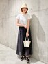 白T×黒スカートのシンプルコーデ。 白Tは柔らかいスーピマコットンで、袖口はロールになっている一癖がポイント。 スカートは落ち感が絶妙で、動くたびに揺れるシルエットが可愛いです! 夏らしい小物やアクセでコーデに奥行きを。
