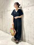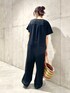 オールブラックのオールインワンが、大人の抜け感を演出するスタイリング。 こちらは水陸両用なので、水着の上から着ても◎ サングラスとリアルバイのOOFOSが夏らしいムードを加え、カラフルなバスケットバッグがアクセントに。