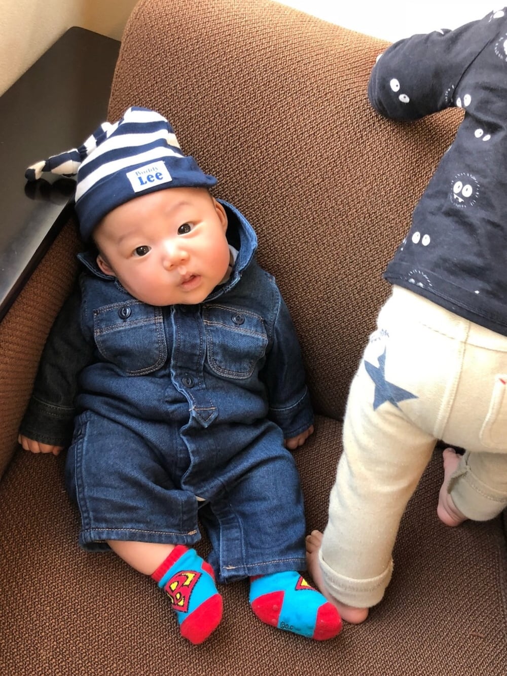 お天気良くお出かけ☺︎ 気温も高くオールインワン1枚でちょうど良かった〜。 10ヶ月年上のがくちゃんとがくちゃんのmamaとカフェでランチ。 あさしと同い年の女の子4人もいて、わちゃわちゃと居心地良かったです☺︎