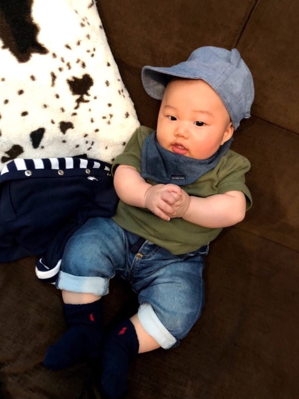 イベントコーデ☆ 朝9時〜夕方5時まで屋外のイベントでした。だっこひもだと暑く、初の半袖に。 カーキとデニムで、papaとリンクコーデにしました☺︎ 長時間で大変でしたが、あさし頑張りました◎ 気をつけていたけど、ちょっと日焼けさせちゃったかも!! いつもmamaたちに付き合ってくれてありがとう!!