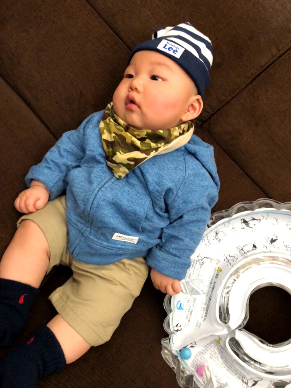 お出かけday☆ 金曜日のダンスをお休みして 午前は、0歳赤ちゃんと一緒のおしゃべり会 午後は、離乳食講座に参加しました☺︎ おしゃべり会のスタッフの方が作ったhandmadeの迷彩柄のスタイを購入させてもらいました♪