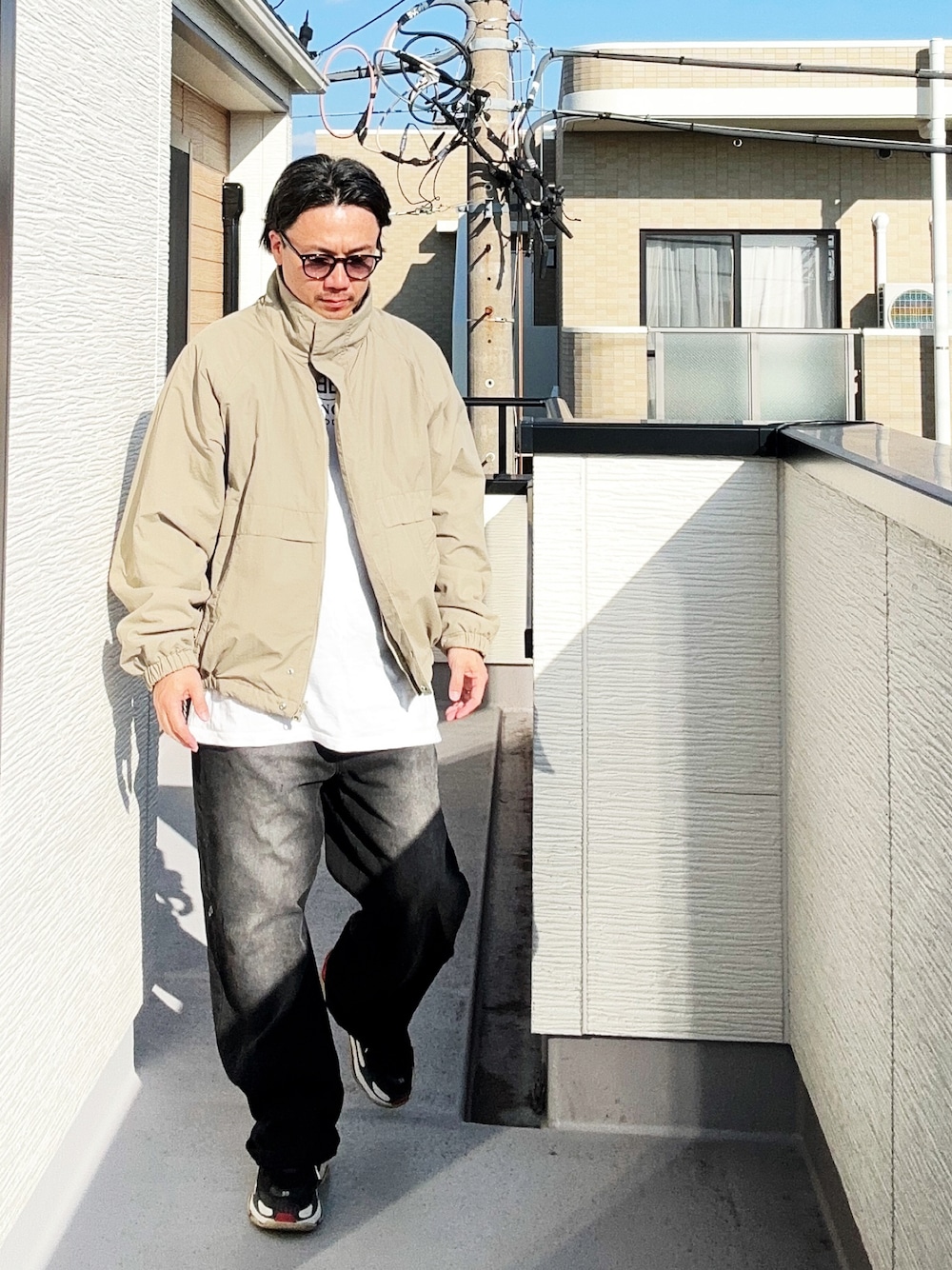 (asatomoz)のブルゾン「限定展開 ビッグシルエット ナイロン フリース リバーシブル スタンドカラーブルゾン」を使ったコーディネート