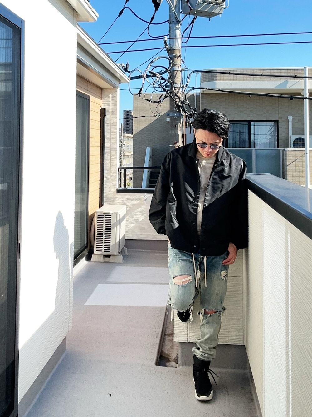 (asatomoz)のナイロンジャケット「COACHES JACKET」を使ったコーディネート