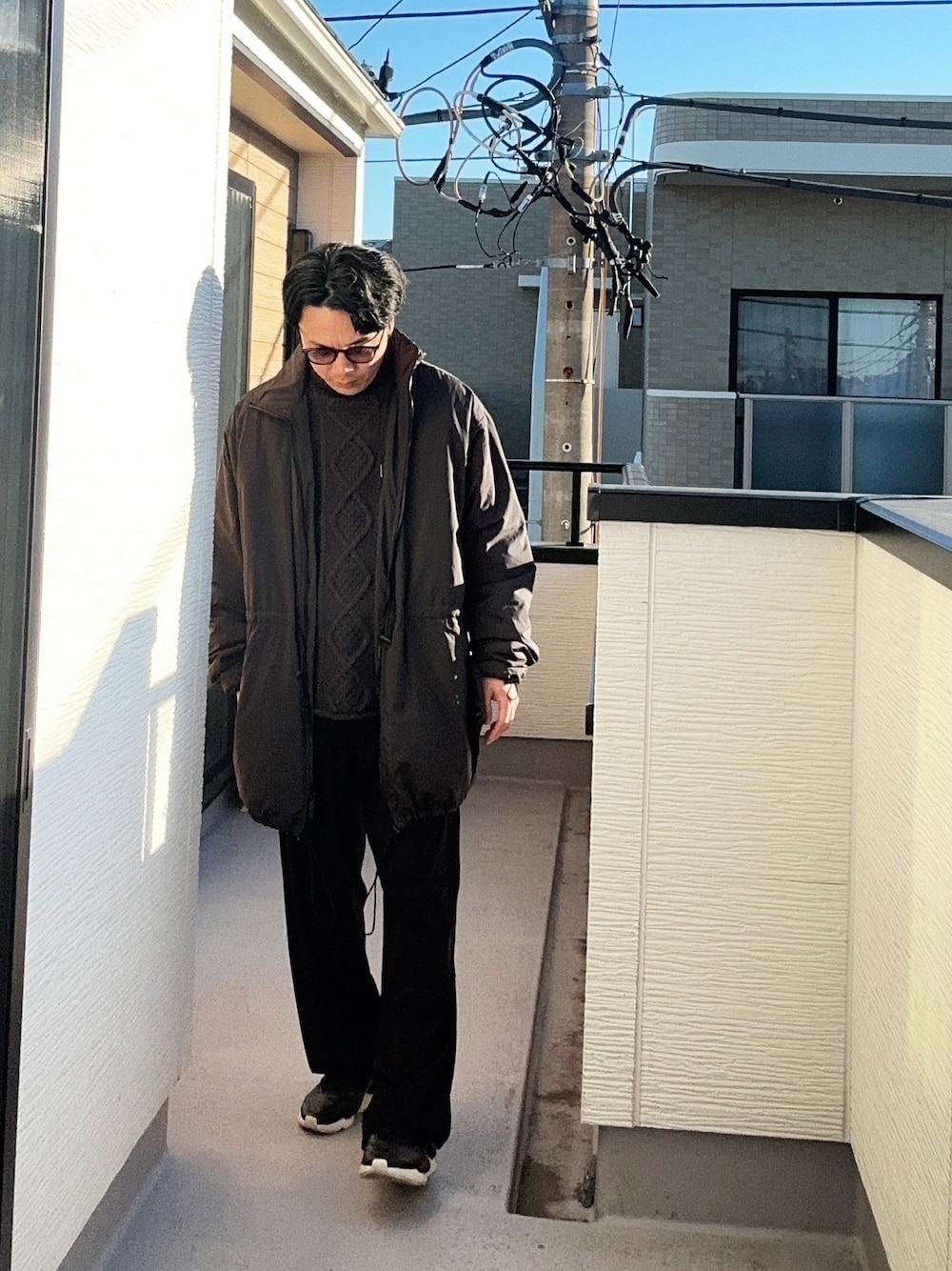 (asatomoz)のニット/セーター「FOG ESSENTIALS/エッセンシャルズ CABLE KNIT TURTLENECK ケーブル編み タートルネックセーター オーバーサイズ ワンポイント ロゴ」を使ったコーディネート