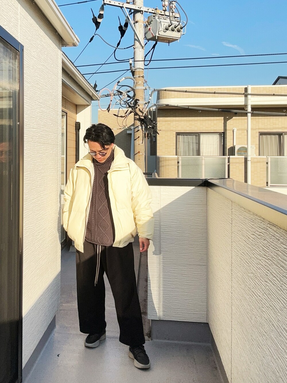 (asatomoz)のニット/セーター「FOG ESSENTIALS/エッセンシャルズ CABLE KNIT TURTLENECK ケーブル編み タートルネックセーター オーバーサイズ ワンポイント ロゴ」を使ったコーディネート