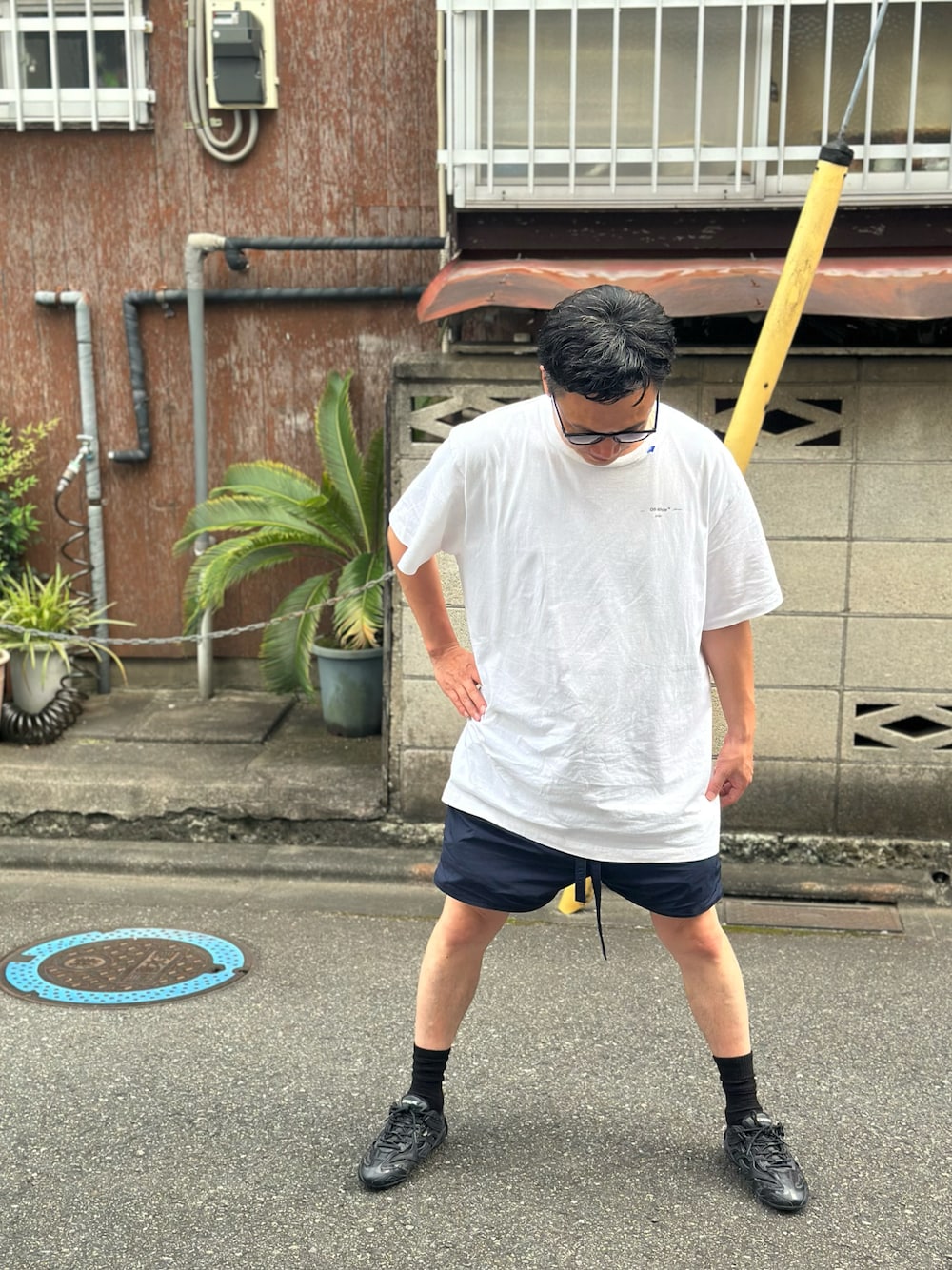 おはようございます‼️ ベランダで撮ると足元暗くてスニーカーのかっこよさわからず、別の足元明るく映りそうなところで撮りました笑 存在感のあるスニーカーにはシンプルコーデが相性○です👍✨ ご覧いただきました皆様‼️ 感謝‼押忍‼️