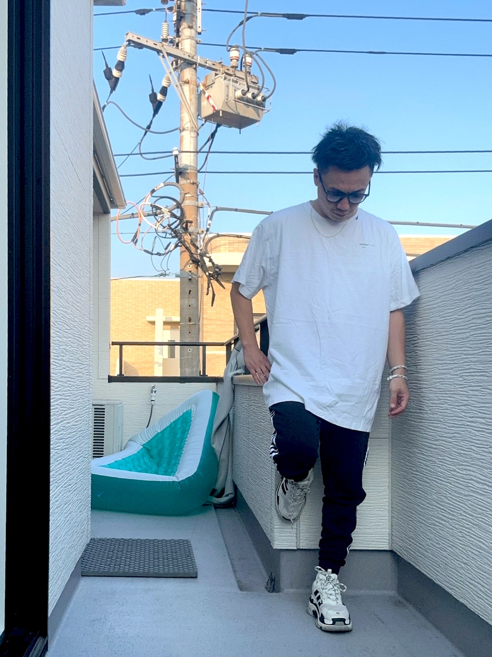おはようございます☀ 前回からTシャツとサングラスを変えた着回しコーデです。 モノトーンで大人ストリートな感じで纏めました☺️ ご覧いただきありがとうございます🙇♂️