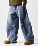 (asatomoz)のデニムパンツ「FREAK’S STORE/フリークスストア ワイドシルエット カーブ デニムパンツ/ダメージ加工」を使ったコーディネート