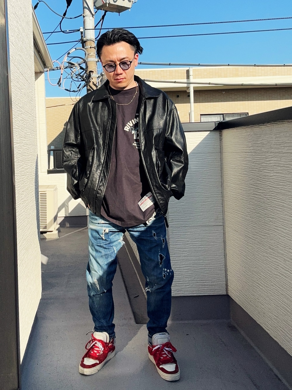 (asatomoz)のブルゾン「FREAK’S STORE/フリークスストア フェイクレザー ジップアップ ブルゾン/リラックスフィット」を使ったコーディネート