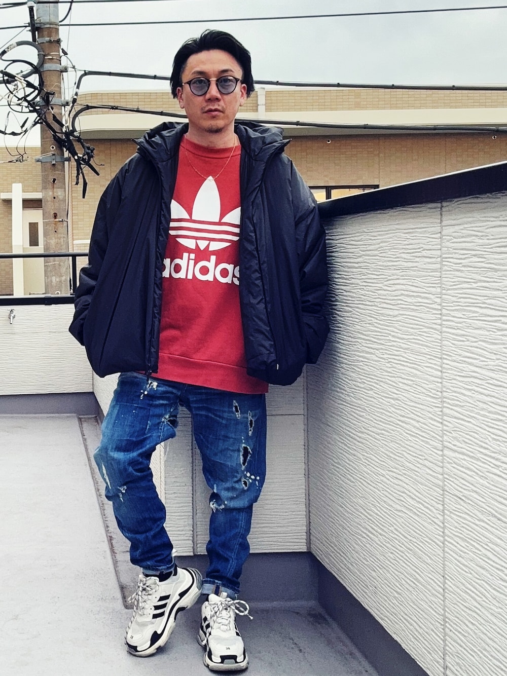 (asatomoz)のスウェット「【ヴィンテージ古着】adidas / アディダス トレフォイルロゴプリント クルーネックスウェット」を使ったコーディネート