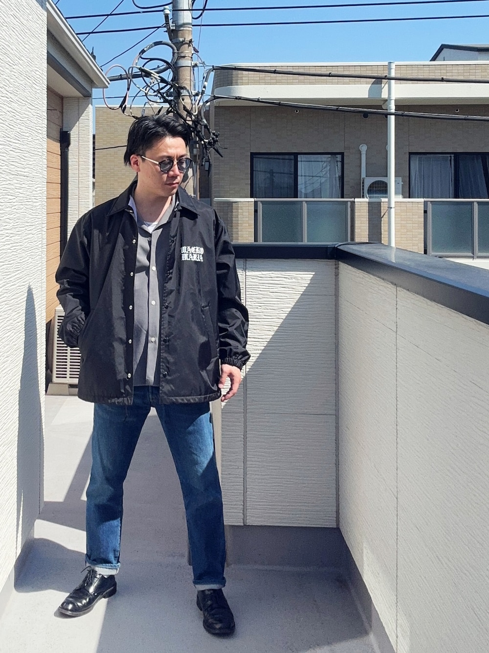 おはようございます🌞 都会的な色使いの、アウター黒にインナーグレーにデニムの大人カジュアルです☺️ ご覧いただきありがとうございます☆