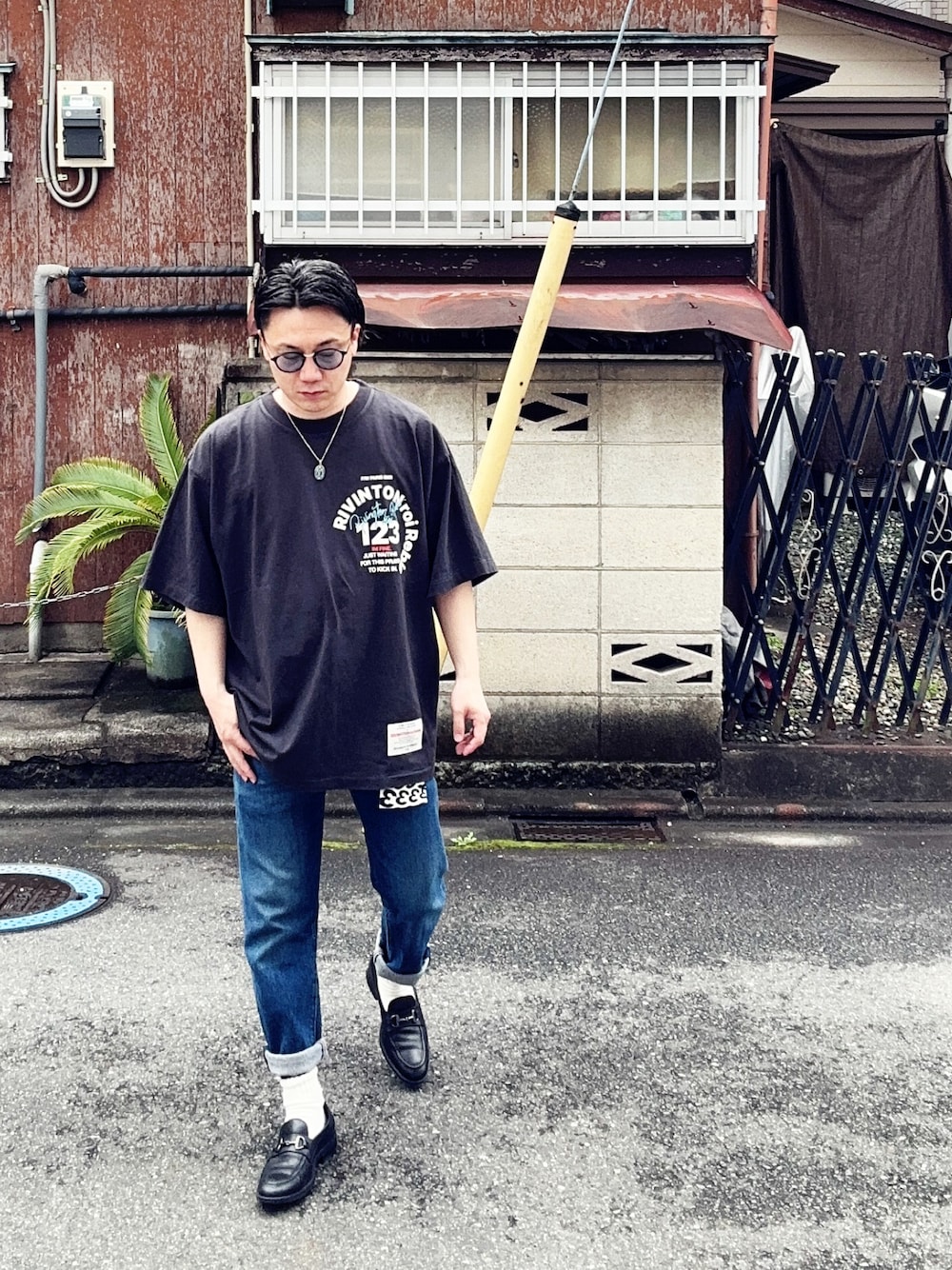 おはようございます☀ 本日のリアルコーデです。 Tシャツでも快適に過ごせる気温ですね✨ ストリート、アメカジを意識して足元外したコーデです☺ ご覧いただきありがとうございます☆