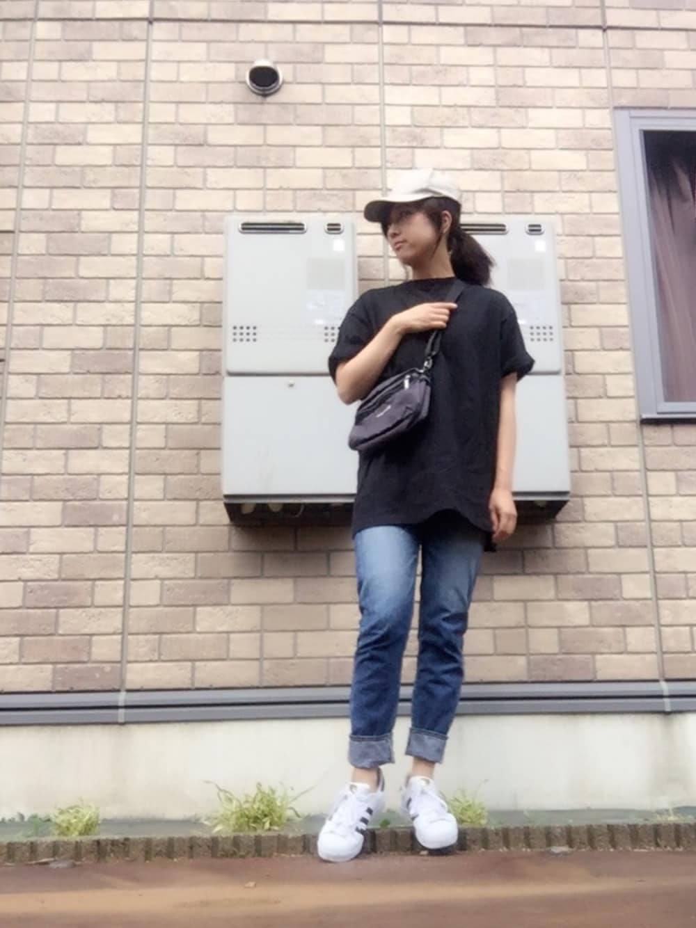 いいねやセーブありがとうございます🌾✨ 夫から借りたサコッシュバッグがポイント👜★ ノーブランドのt/shにSEAのハイウエストテーパードデニム合わせました。SEAのデニムはセルビッチで色落ちがとても良く気に入ってます(о´∀`о)💞 キャップはノーブランドです^ - ^