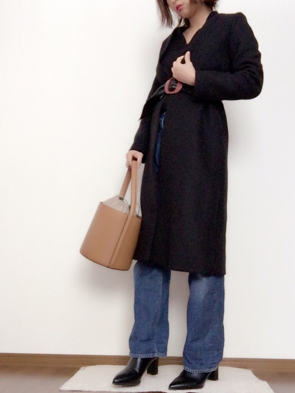 asaminのステンカラーコート「メルトンロングコート」を使ったコーディネート