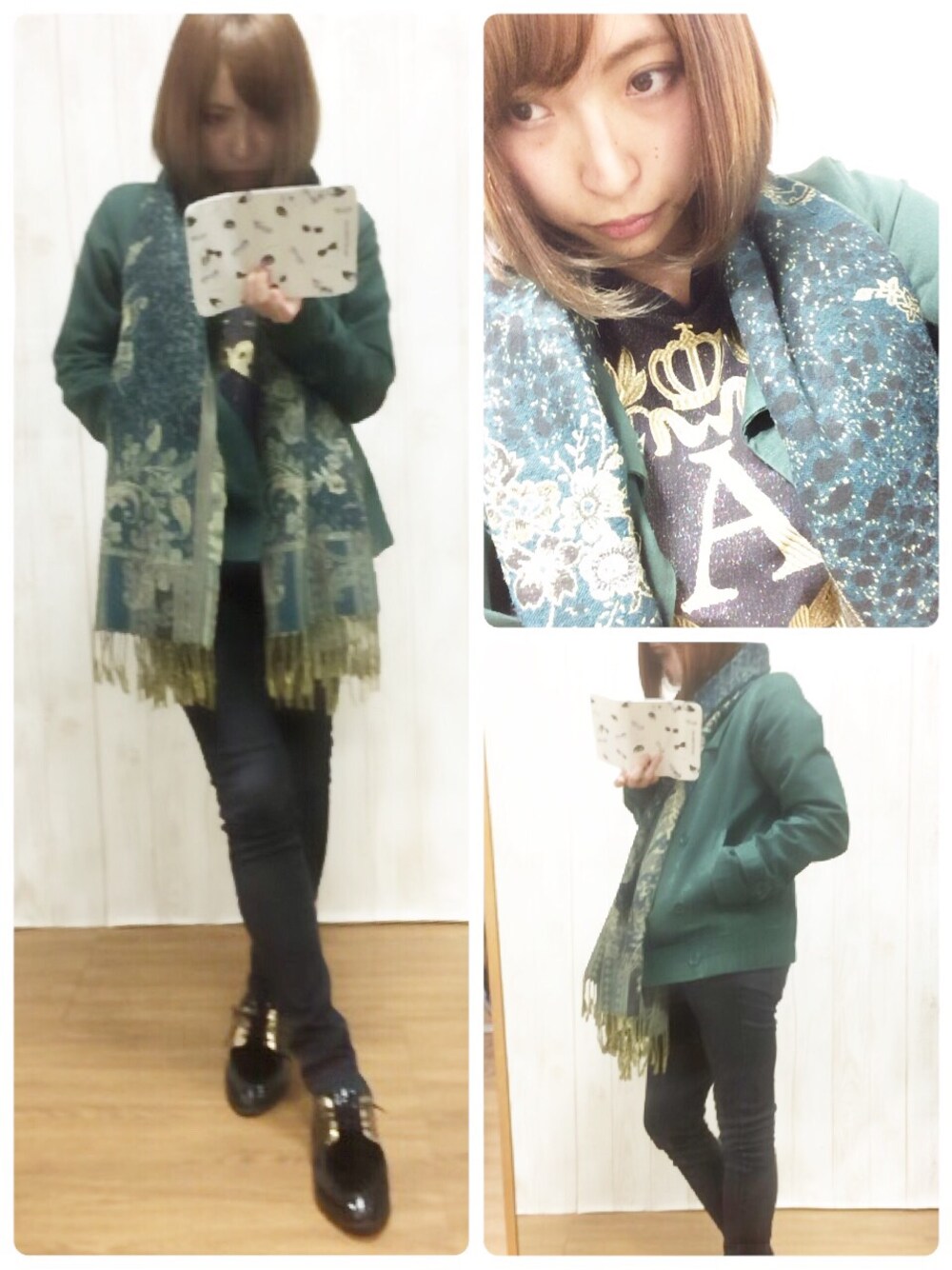 ブラック×モスグリーンで まとめたよ(^ω^) 今日は金曜日◯ 6ピタで帰ります。