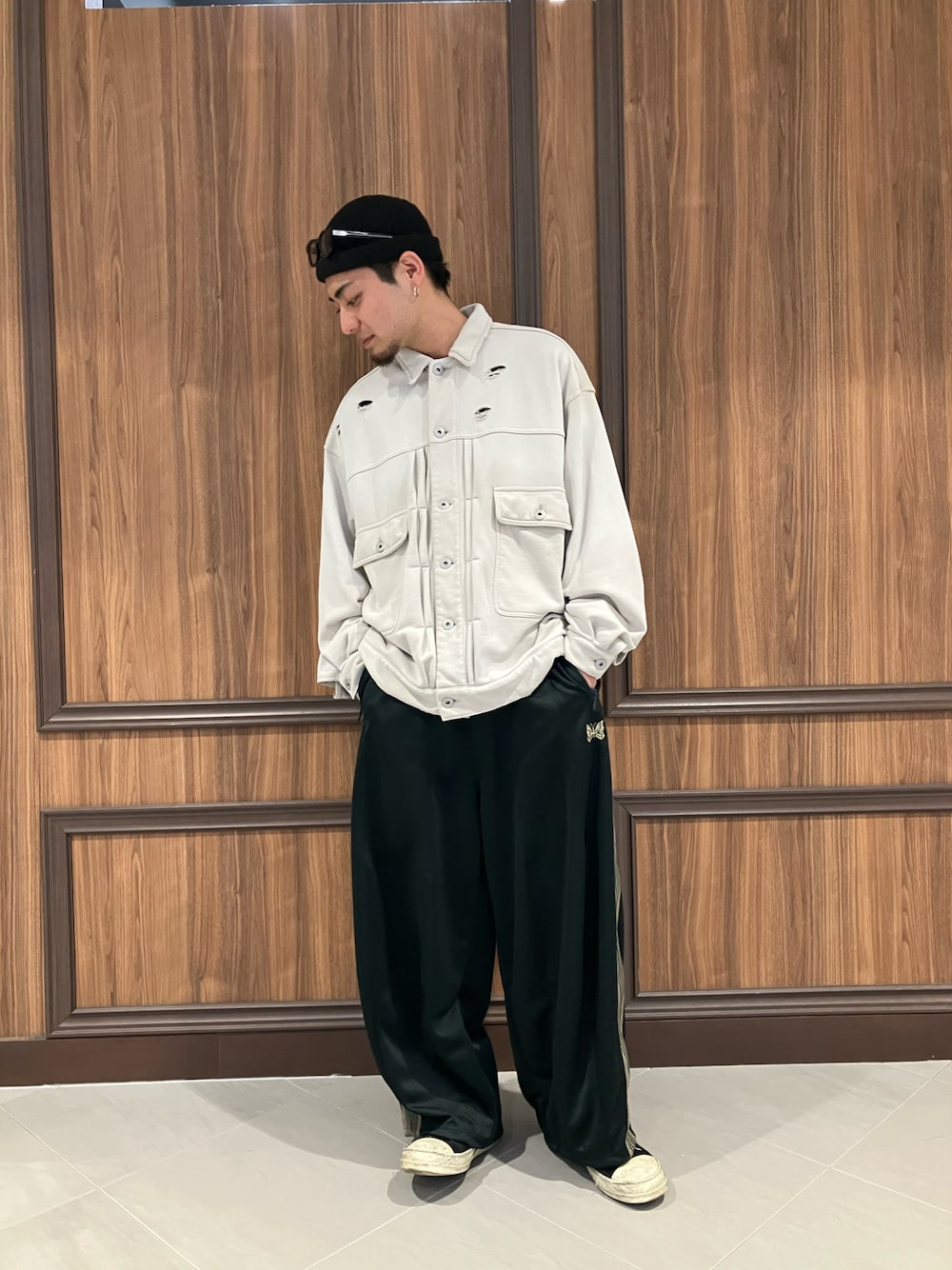 ジャージ生地のパンツにシャツを合わせることでラフすぎず、ダメージがあることでストリートのスタイルに落とし込みクールな印象に✨
