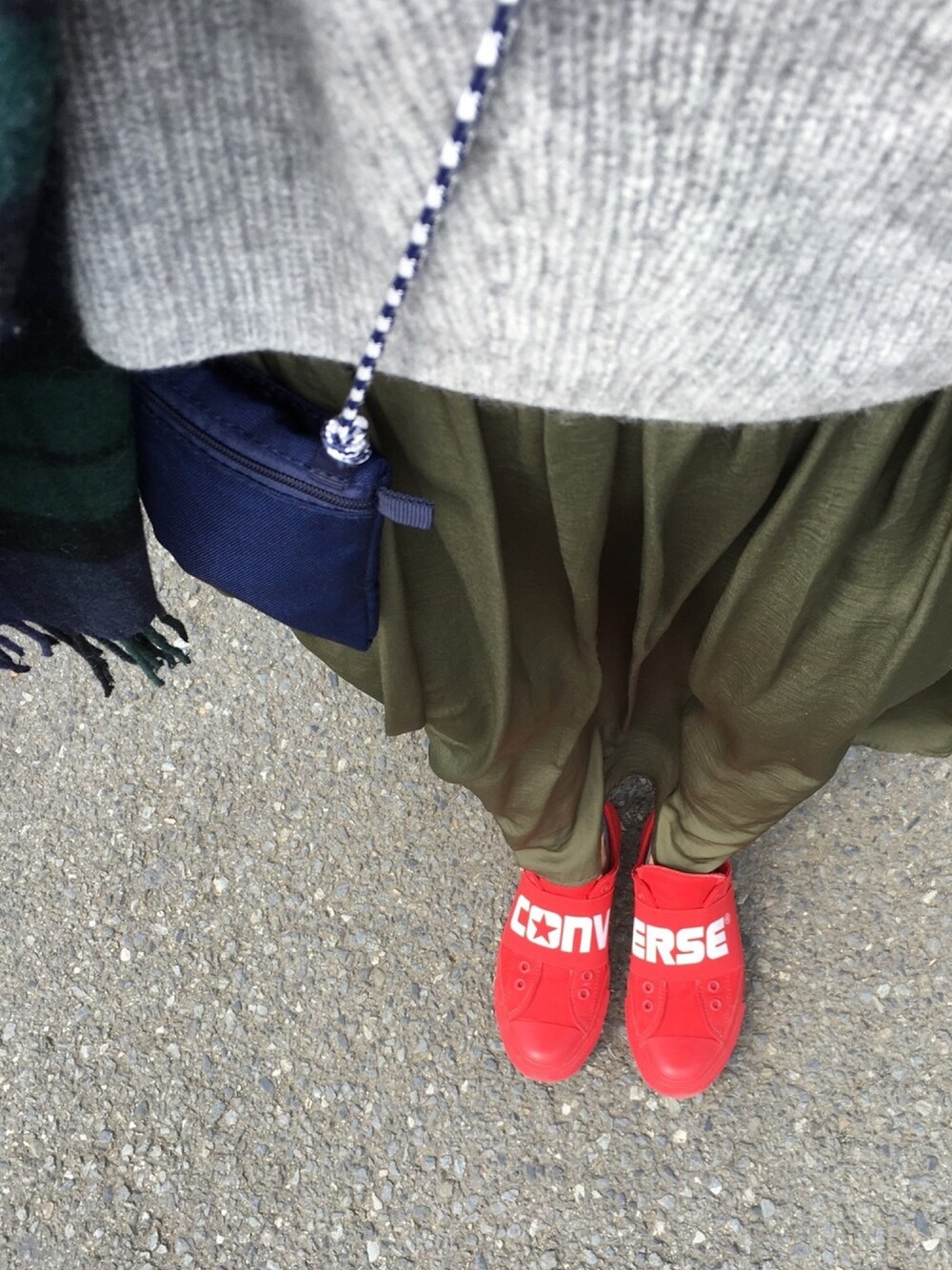 お昼休みにちょっとスーパーへ❣️ 風のせいでロンスカがズボンみたいに見えちゃってる😂 少し暖かかったので、マフラーのみで🧣✨