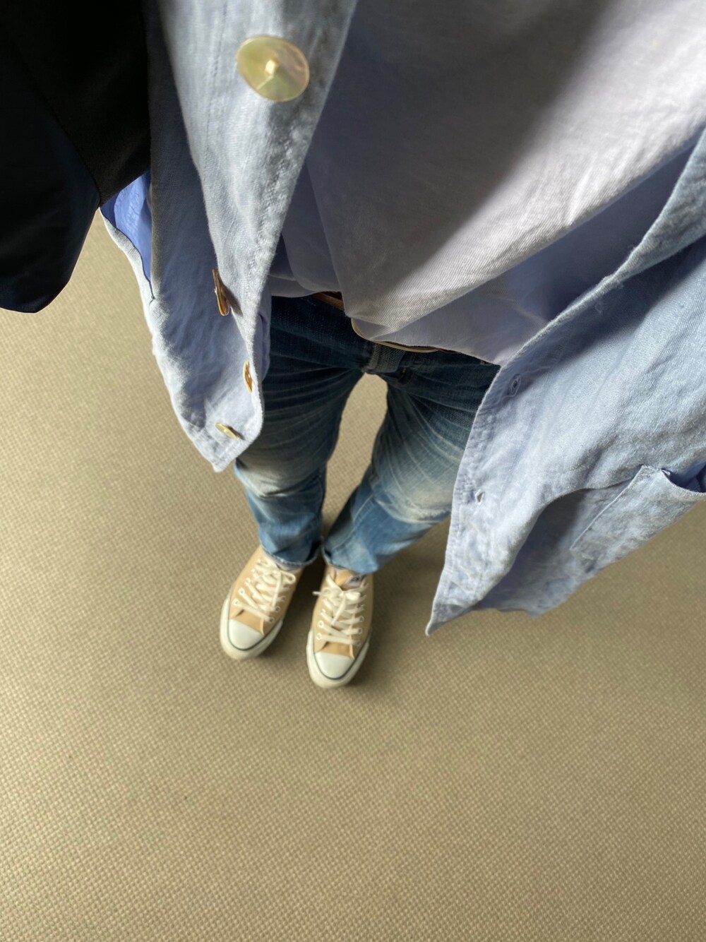 今週のみ、時短勤務🤭 遅めの出勤でのんびりと🤫笑 今日のお昼ぐらい、ちょっと暑くなりそうなのでTシャツにリネンのカーディガンを羽織って✨