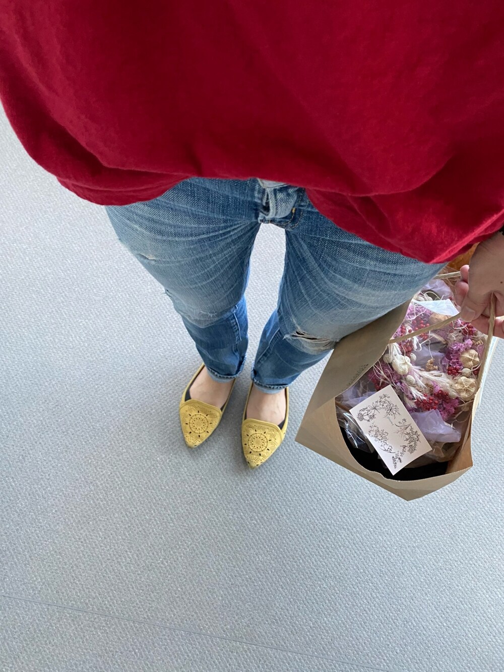 明日母の日なので今日お花を渡しに行ってきます💕(隣の町です😂) いつもありがとうという感謝の気持ちを込めて🥰 今日は暑くなるみたいなので、赤いTシャツで✨