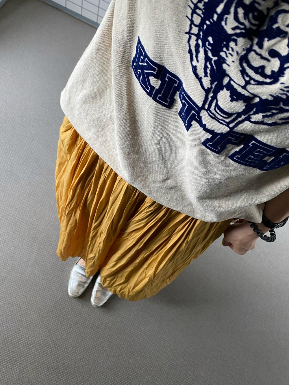 曇ってるけど、蒸すな…😰 それにマスクしてるから余計に暑い😵 今日はフィットのしないファッションで出社😂