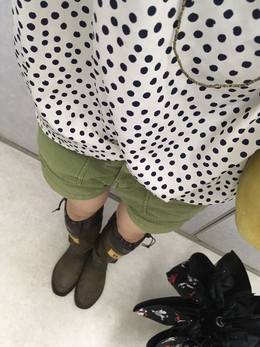 台風なので、ショーパンに長靴✨ 濡れたくないんだよね〜😨笑