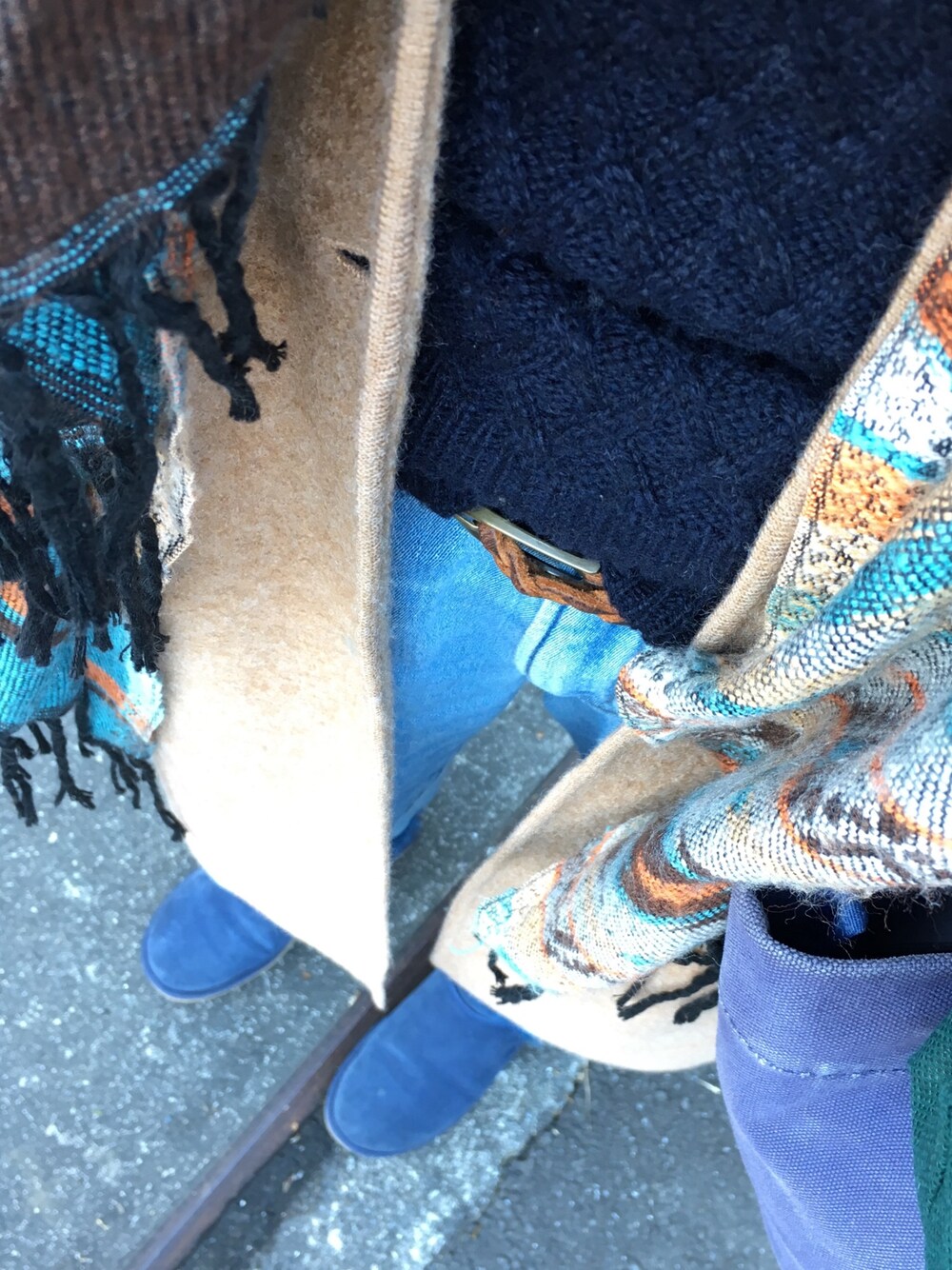 今日は冷えるという事でいっぱい着ちゃってる…🙈 セーターはメンズのでヒートテックなので温かい✨ 今日のファッションは全身青系色ですな…😂