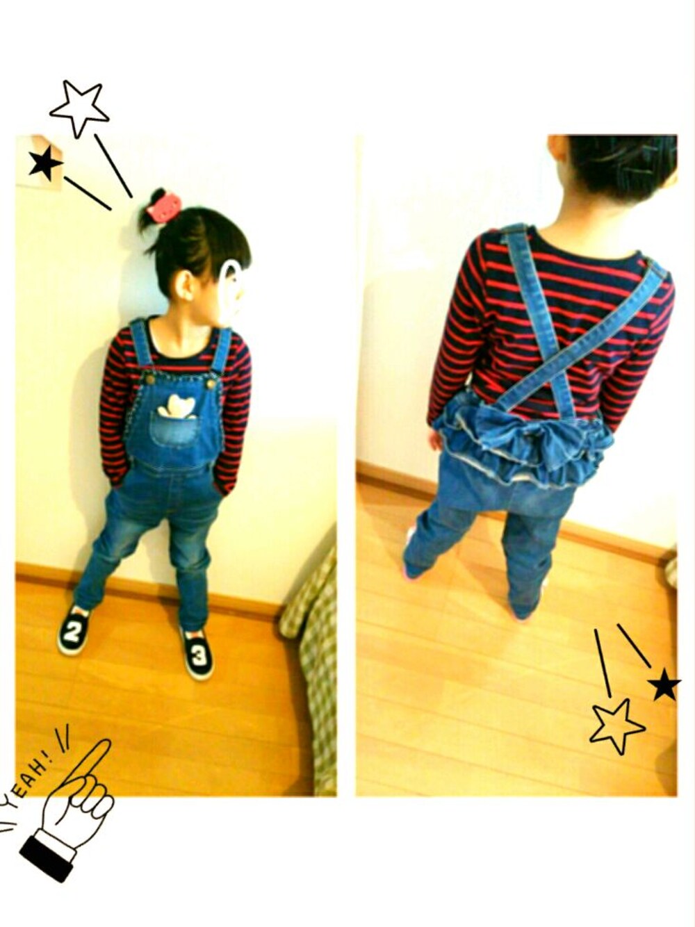 ママがサロペット着るからあたしも着る(笑) 最近まねっこな娘ちゃん🎵