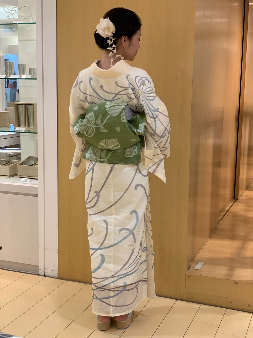 松屋銀座 大人はやっぱり 高級な浴衣を着ると 格上げ⤴︎ 艶も出る✨ メッシュ素材だから涼しいし、 帯もメッシュ✨ お太鼓にする事で 一気に大人浴衣コーデの完成♡