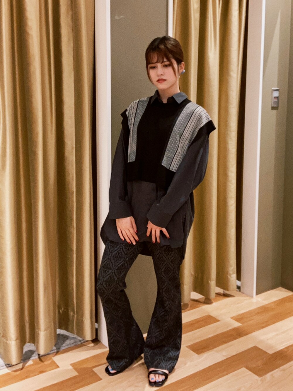ashiaのベスト「ジャガード柄ニットベスト*」を使ったコーディネート