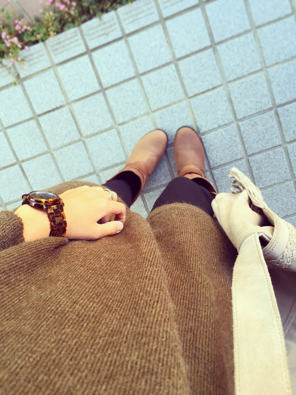 長めのニットにワークブーツ。好きなコーデ。