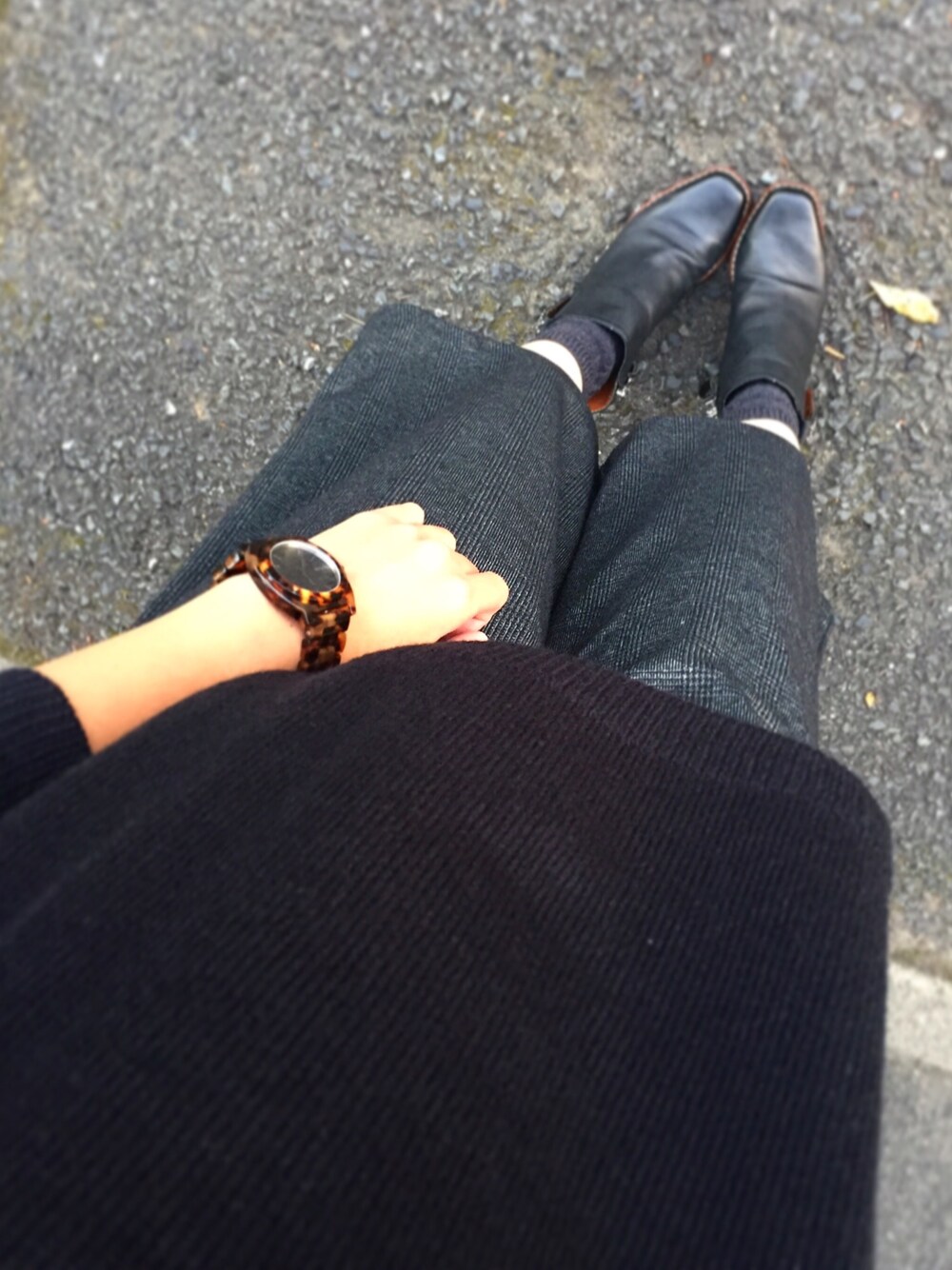 ブラックとグレーで、シンプルコーデ。